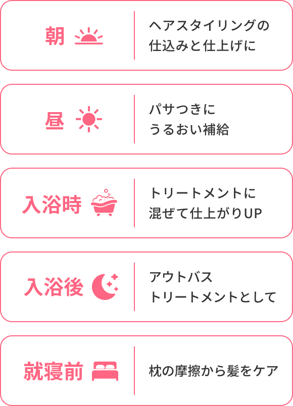 髪の状態に合わせて自由に使えるヘアケアアイテムです。