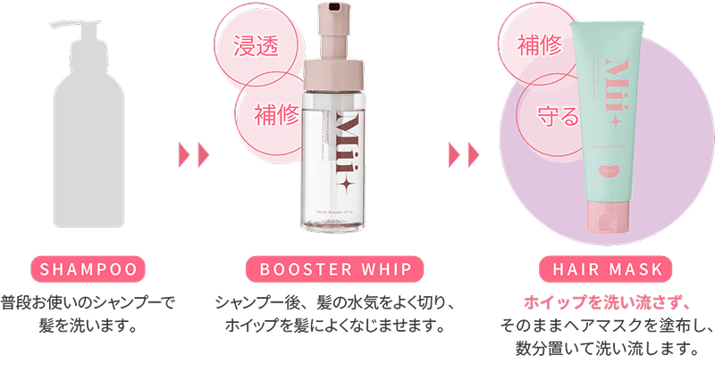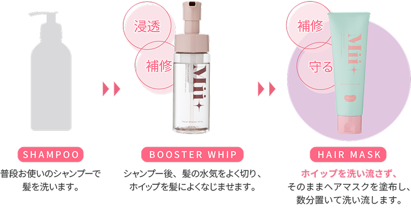 ※髪の長さと毛量に合わせて、使用量を調整してください。